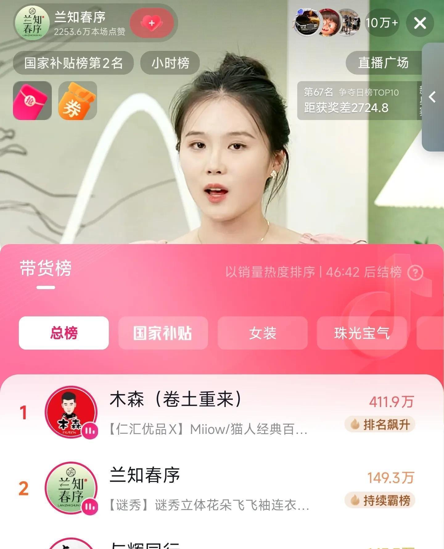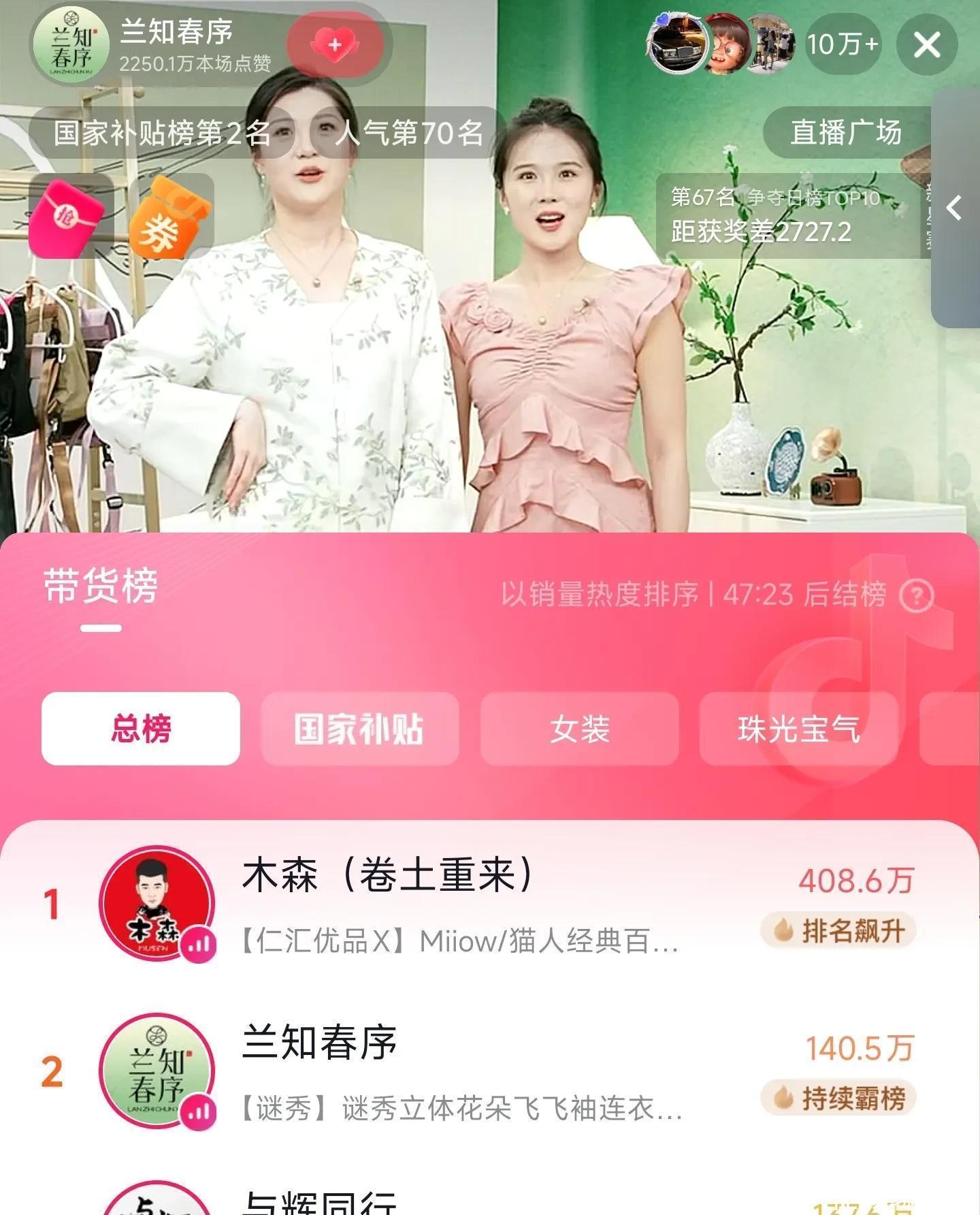 首秀8分钟,点赞破200万,带货榜直冲TOP2。