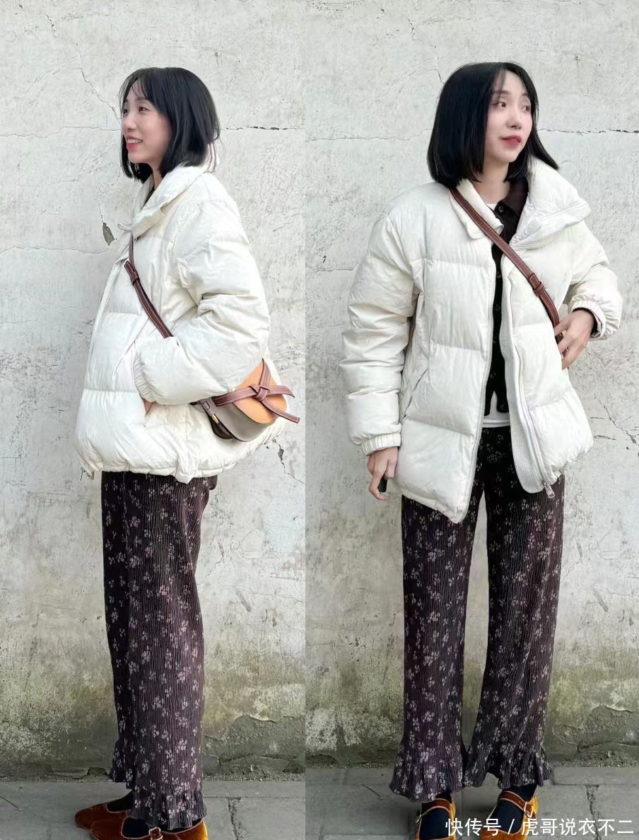 像图中这件白色的短款羽绒服,不错使过于蓬松的面料,呈现出几分轻细的成果,幸免在视觉上展现出很痴肥奸巧的身形。