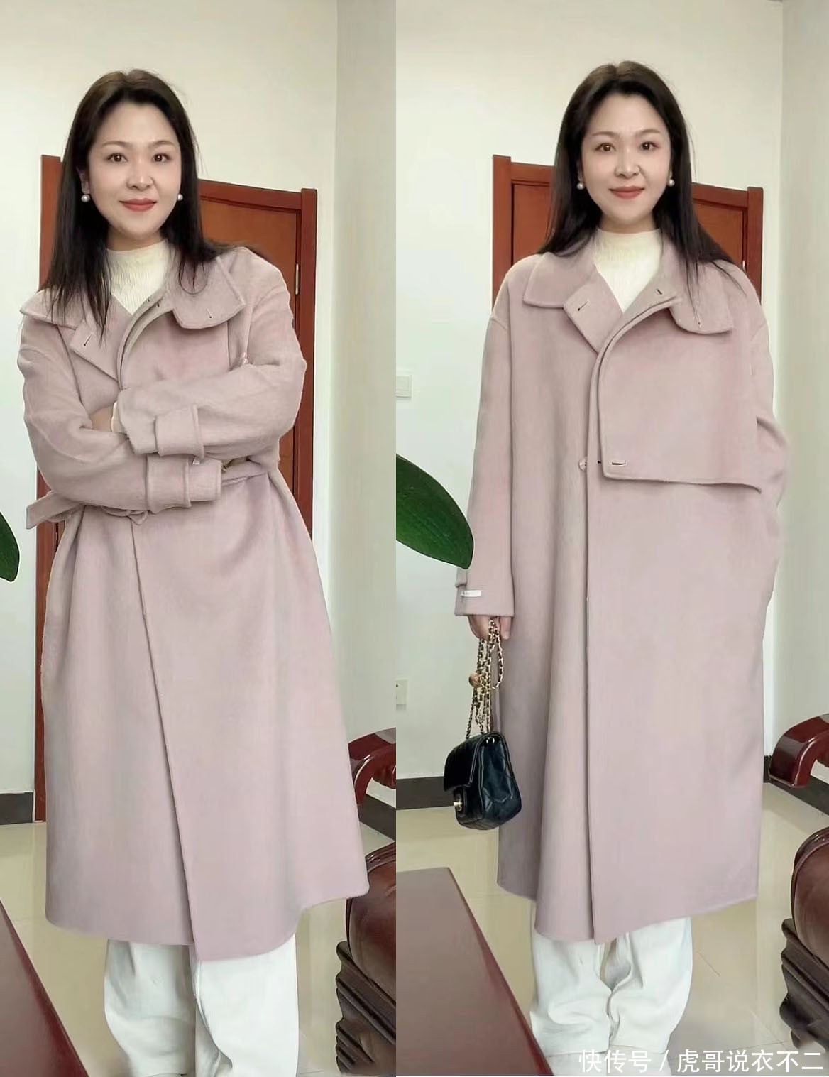 首当其冲确固然便是长大衣,最具有代表性的气质型外衣,亦然在冬季塑造知性穿搭时的必备。像上图这件浅粉色的长大衣,捎带了相比柔好意思的风味,白色长裤的搭配,不错使外衣立场被完整的延续下来,共同映衬出和蔼俏丽的外形。