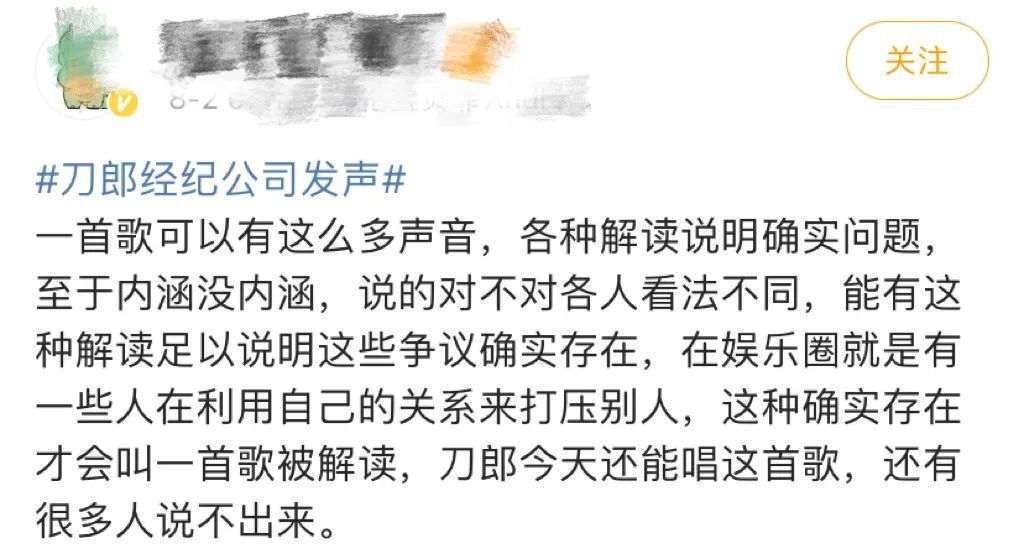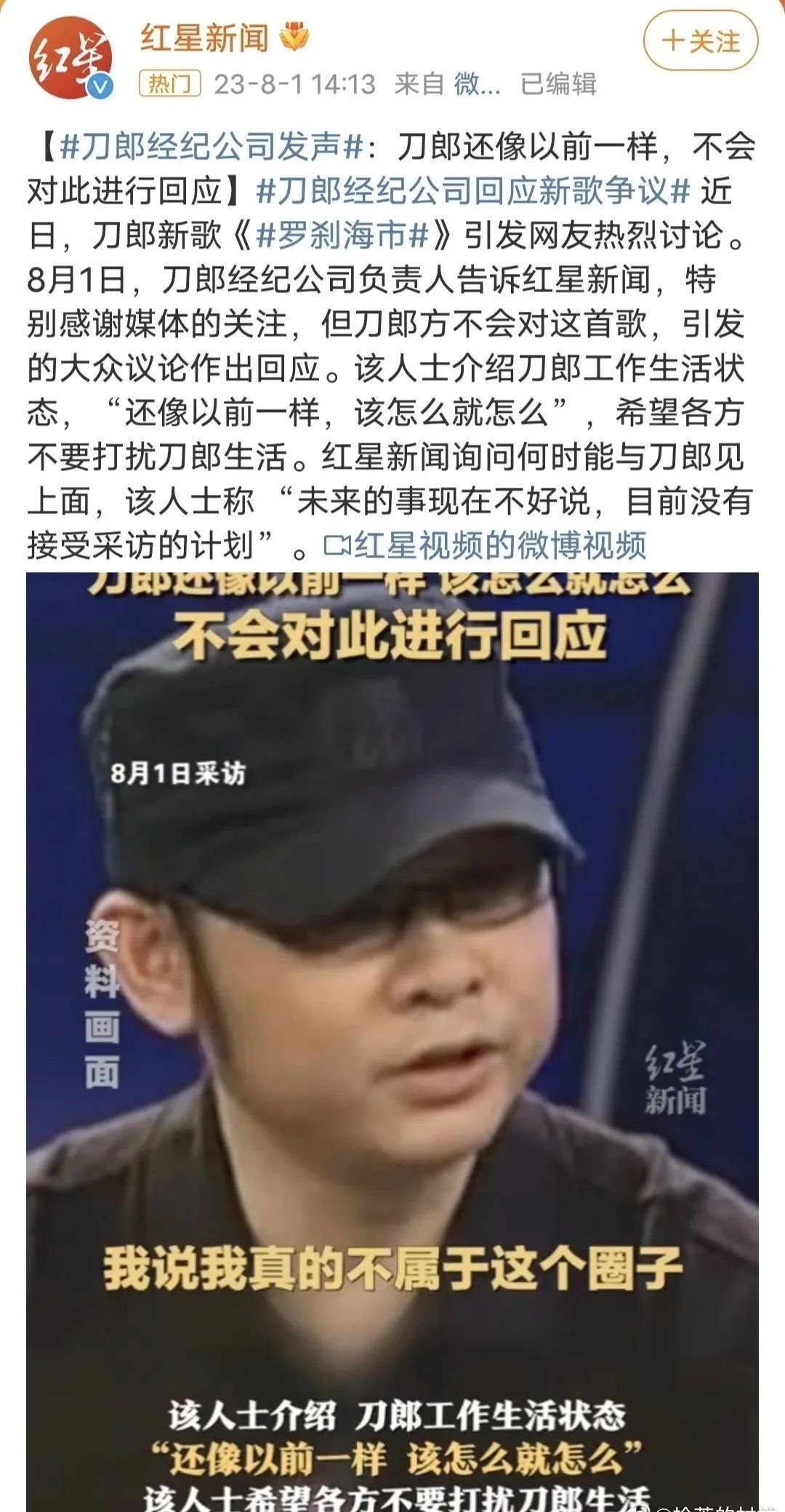 昨天,刀郎的经纪公司发声,称“特别感谢媒体存眷,但刀郎方不会对这首歌激勉的大师辩论作出回答”。