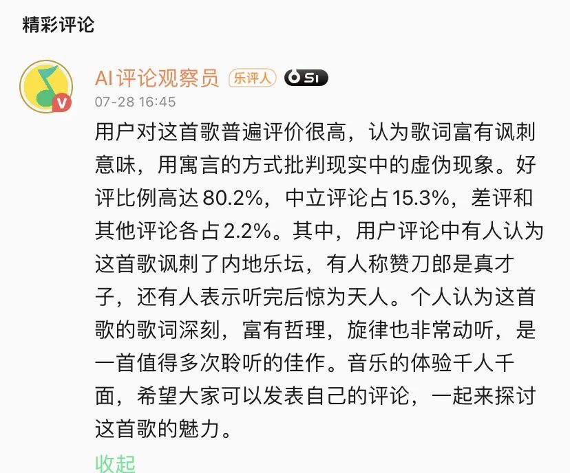 还牢记本年2月份,李荣浩的一首《乌梅子酱》刷爆短视频平台时,著明乐评东说念主丁太升曾在自媒体上怒评该作品“俗不行医”,激勉广宽争议。